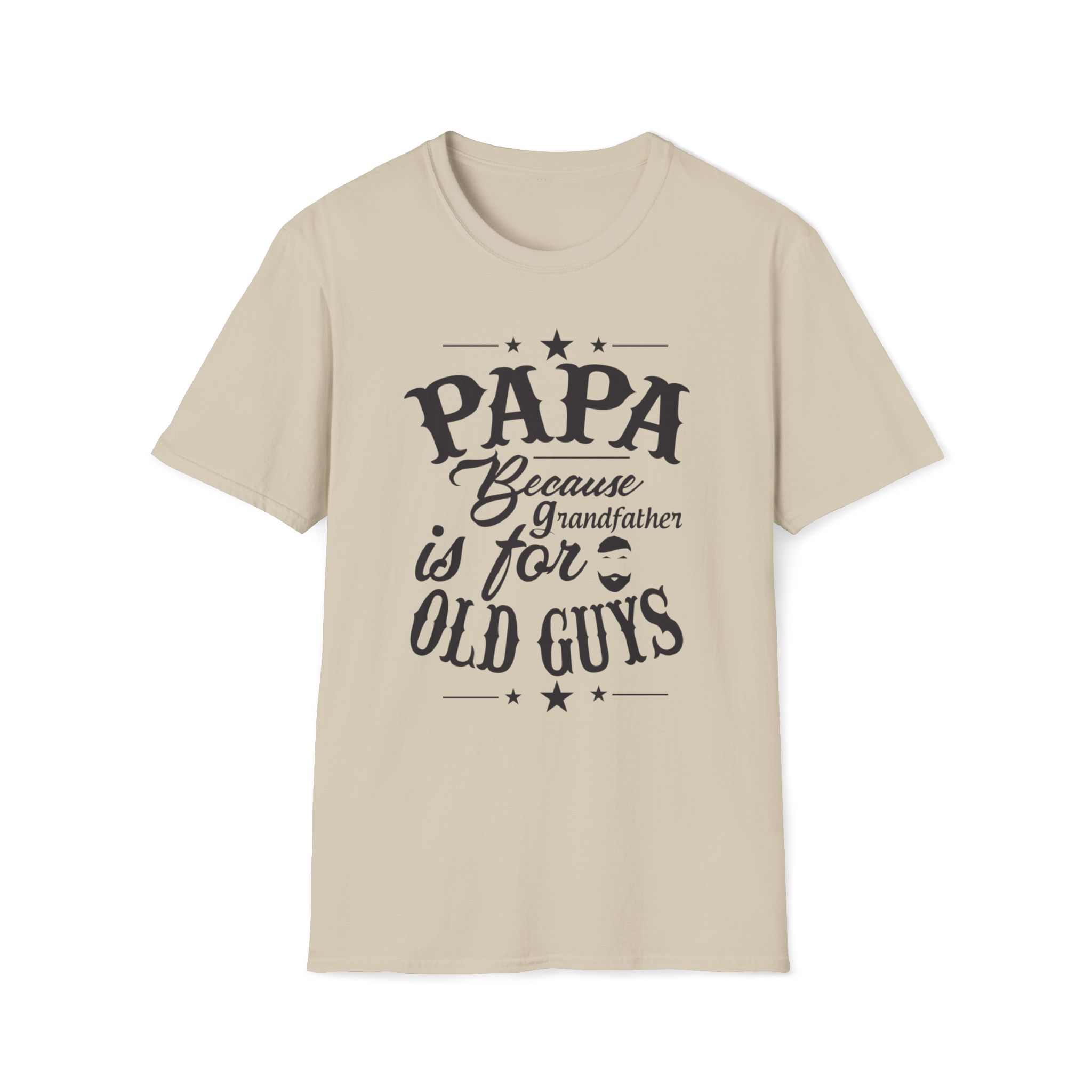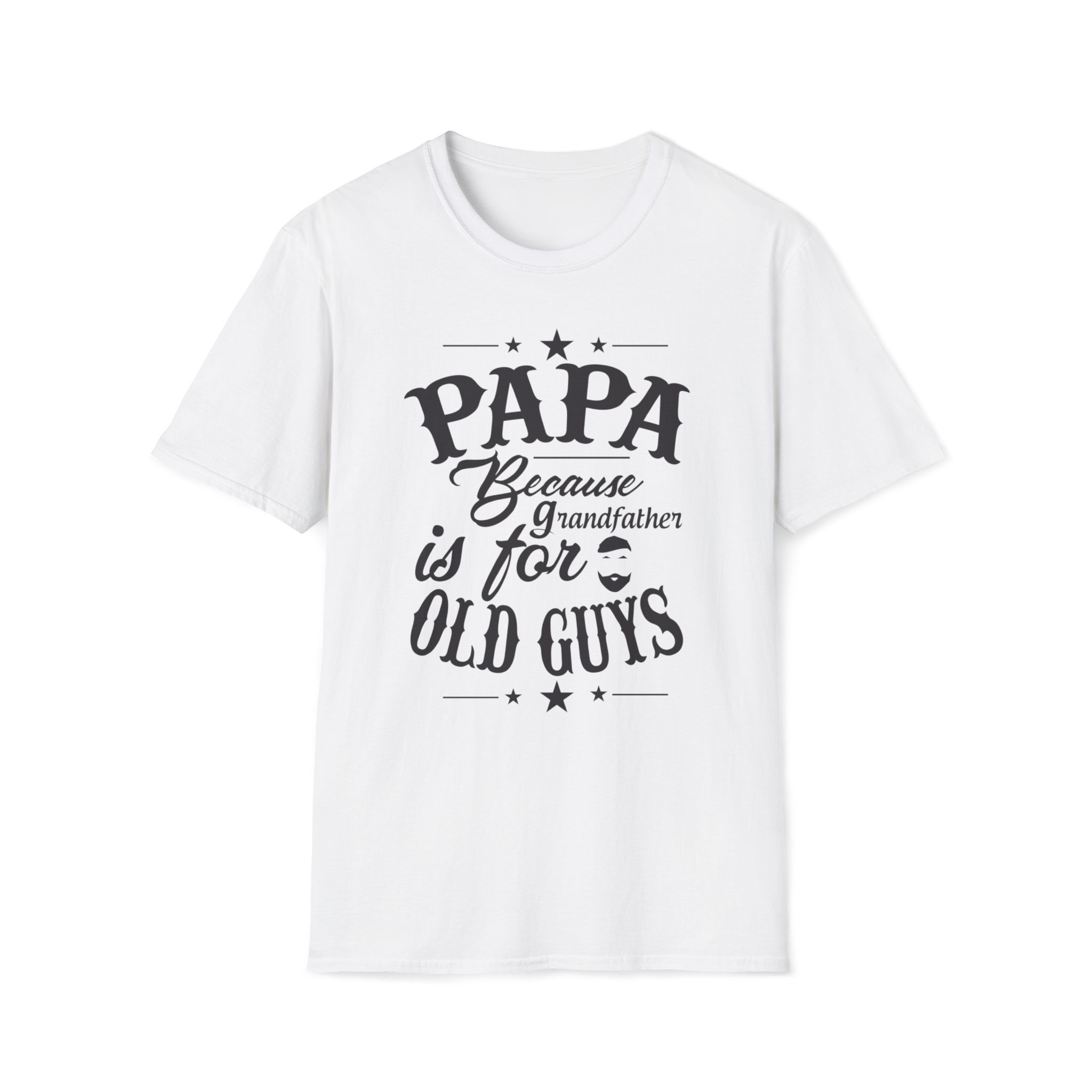 Show off your cool side with our “PAPA — Because Grandfather Is for Old Guys” unisex soft-style T-shirt — the perfect blend of comfort, style, and humor. Designed for the papa who’s young at heart, this funny grandfather shirt makes an ideal Father’s Day gift, birthday present, or everyday tee for the coolest grandpa around.
