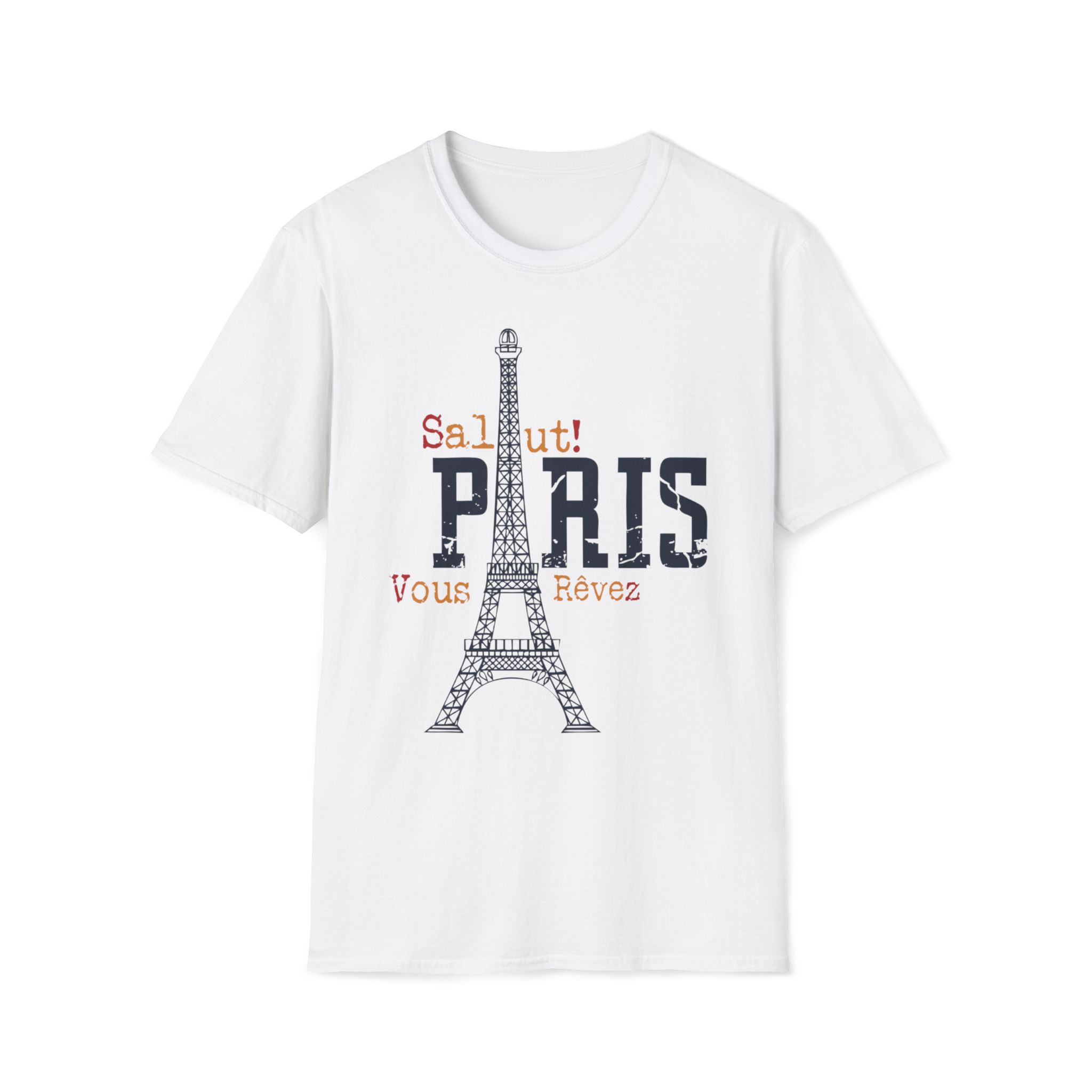 Capture the charm of Paris with our “Salut! Paris Vous Rêvez” T-shirt — a stylish blend of simplicity and sophistication inspired by the City of Love.
